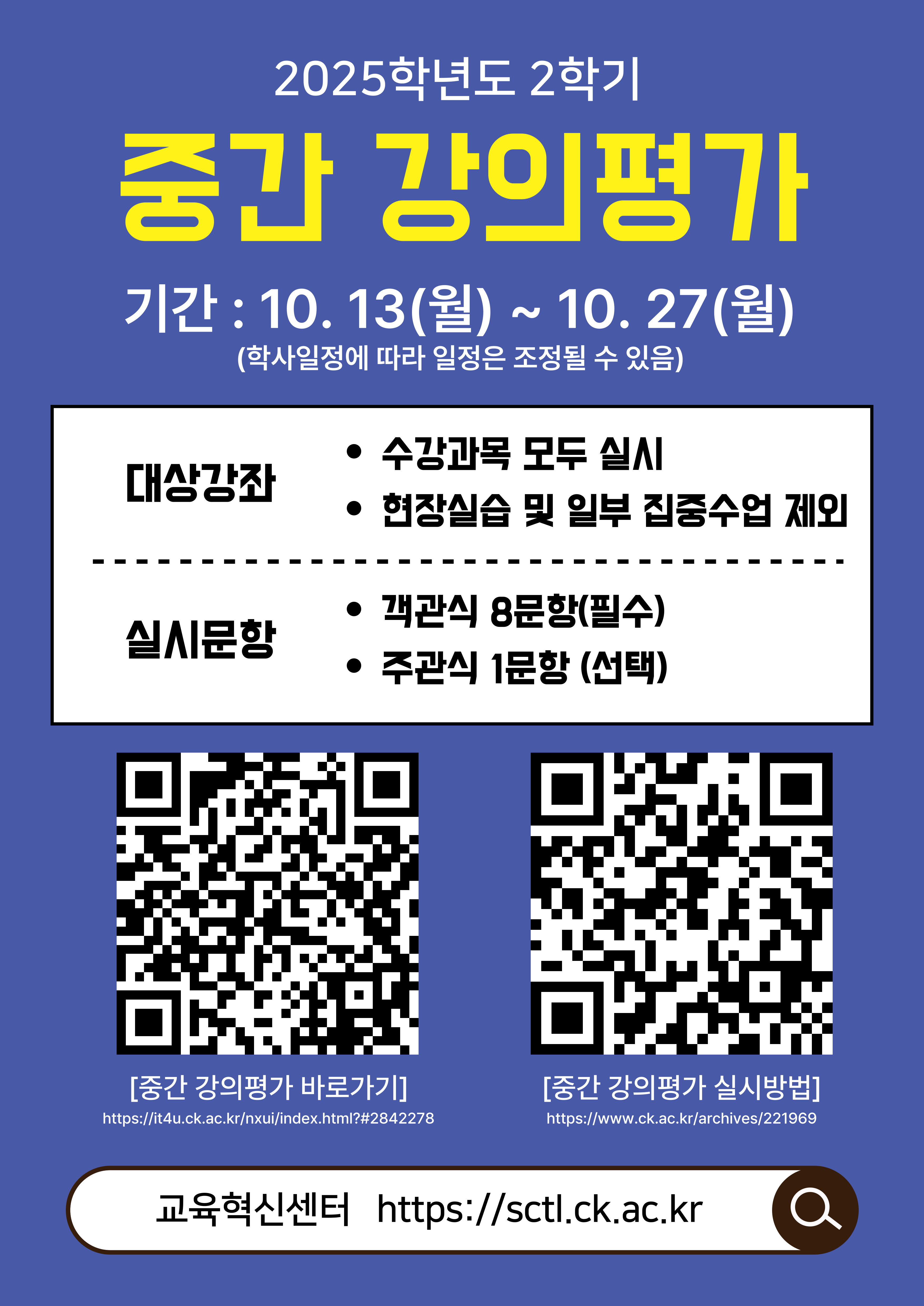 2025학년도 2학기 중간 강의평가를 실시합니다.